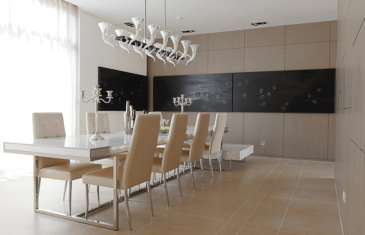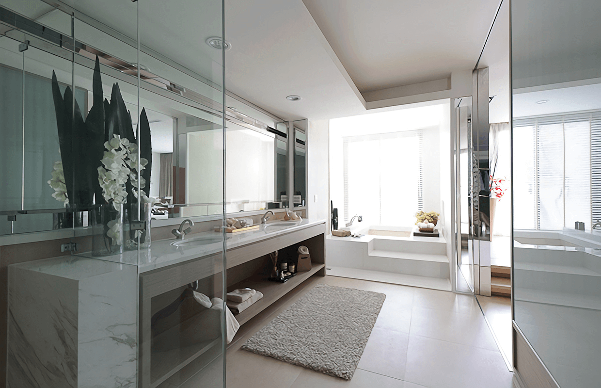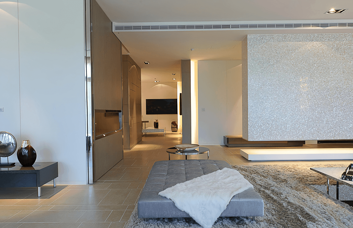 以回字型流動的平面空間為主要架構,跳脫鎖位的風格定位,空間硬裝修部分以理性的態度做出空間中的量體關係,結合各式大型訂製畫作展線空間的品味