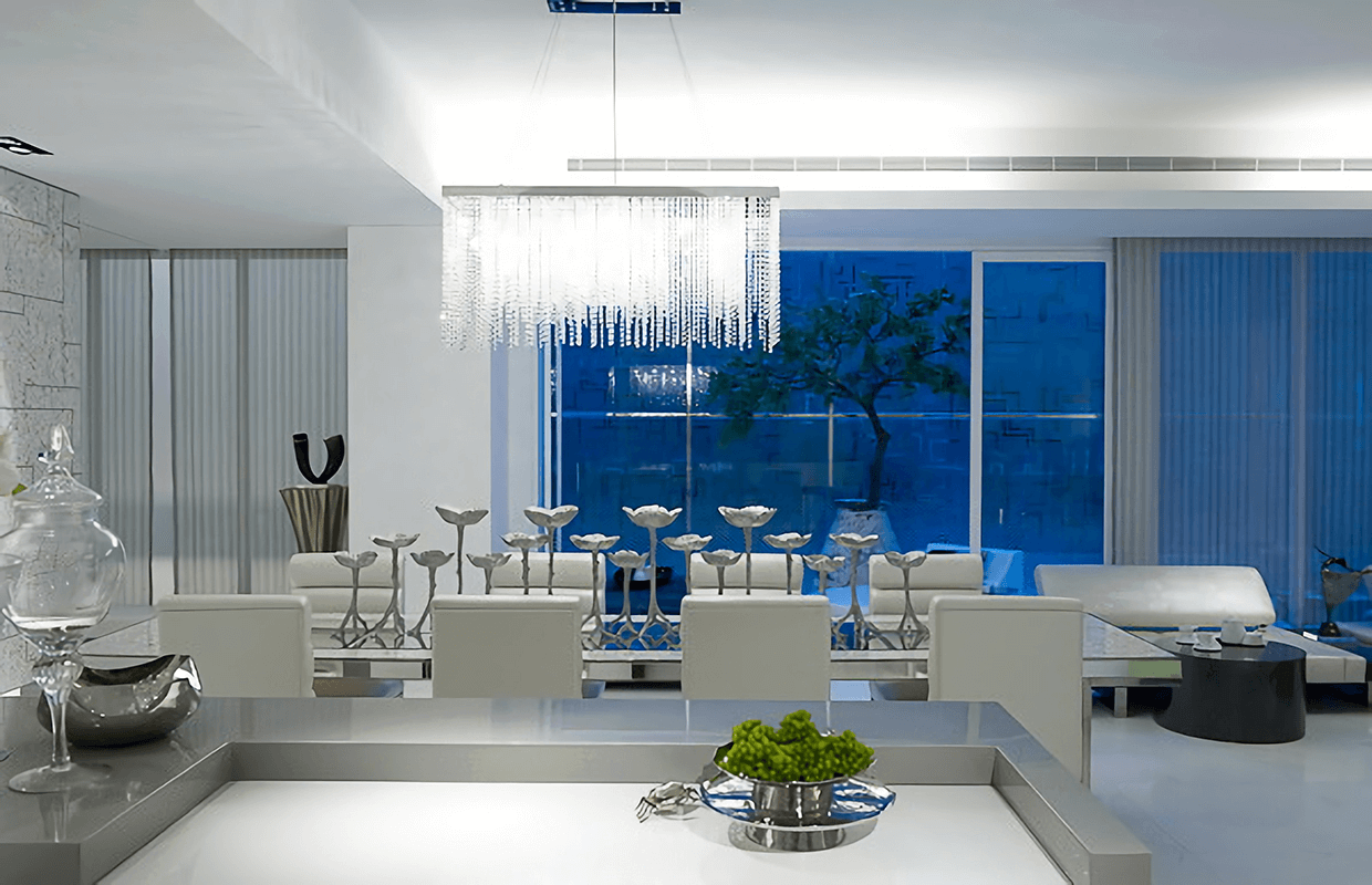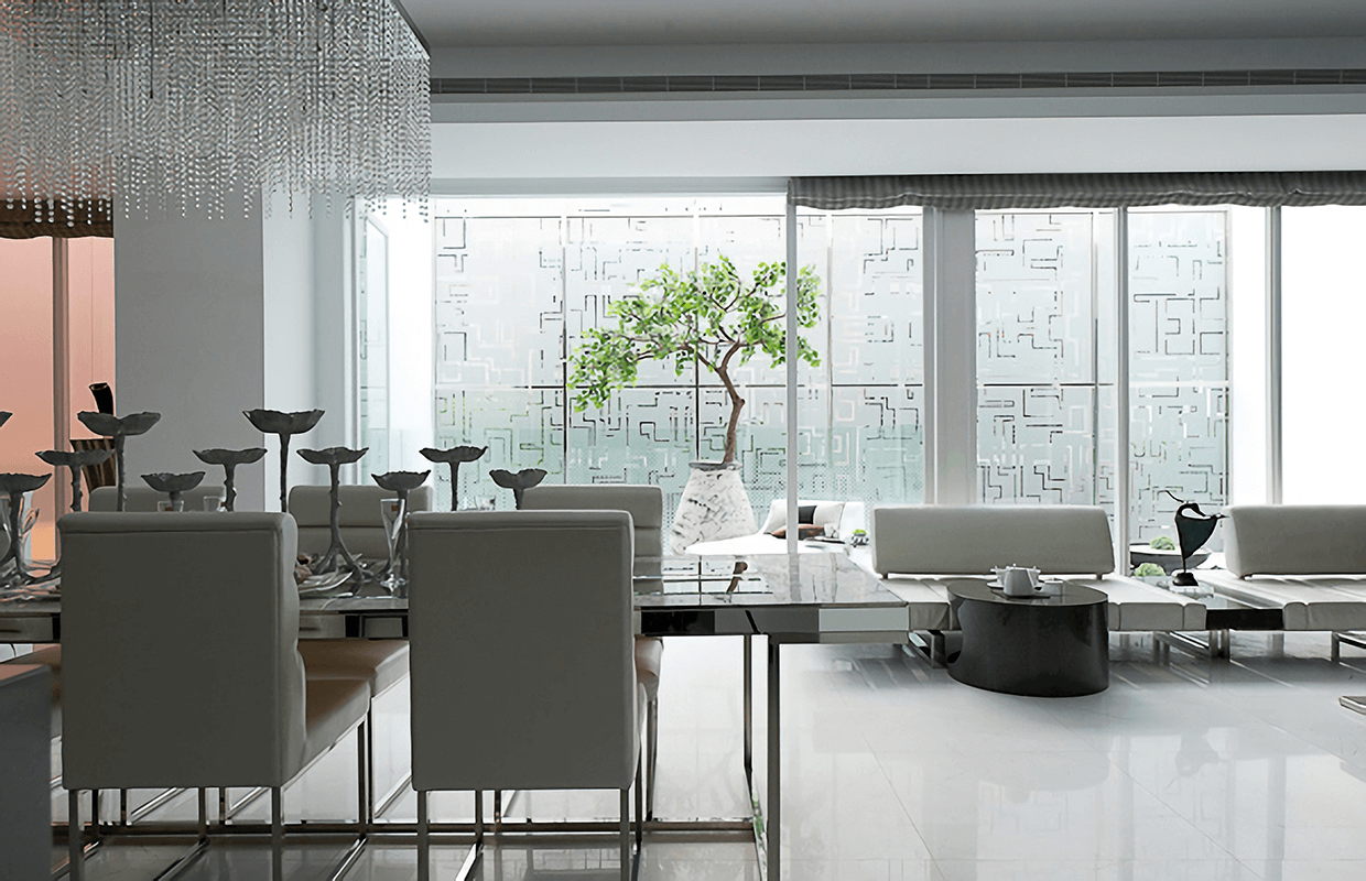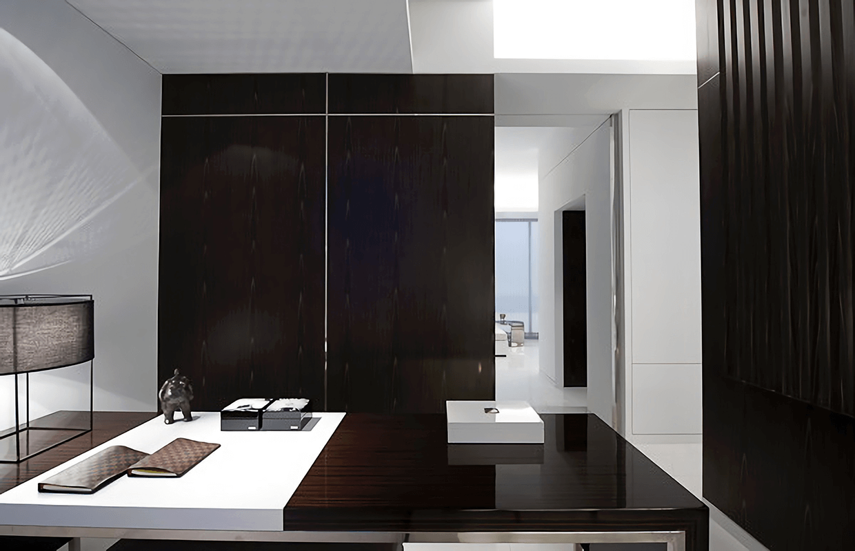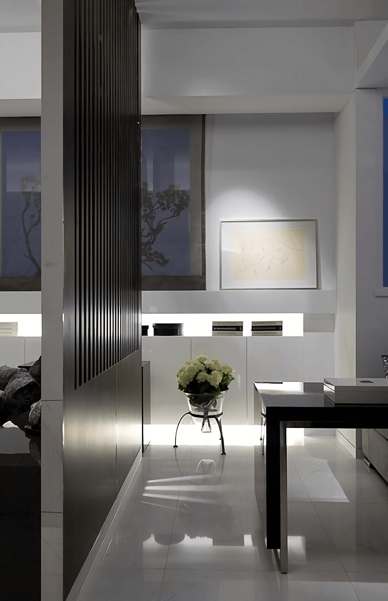 延續此個案接待中心美術館的概念,以國際旅人的時尚品味打造,結合服裝設計師吳季鋼的代言話題,延續了簡化的織品Pattern概念融入空間,創造出與眾不同的時尚感
