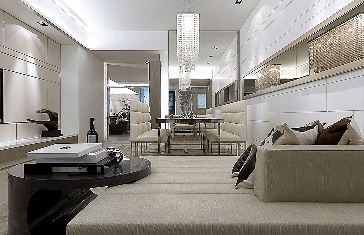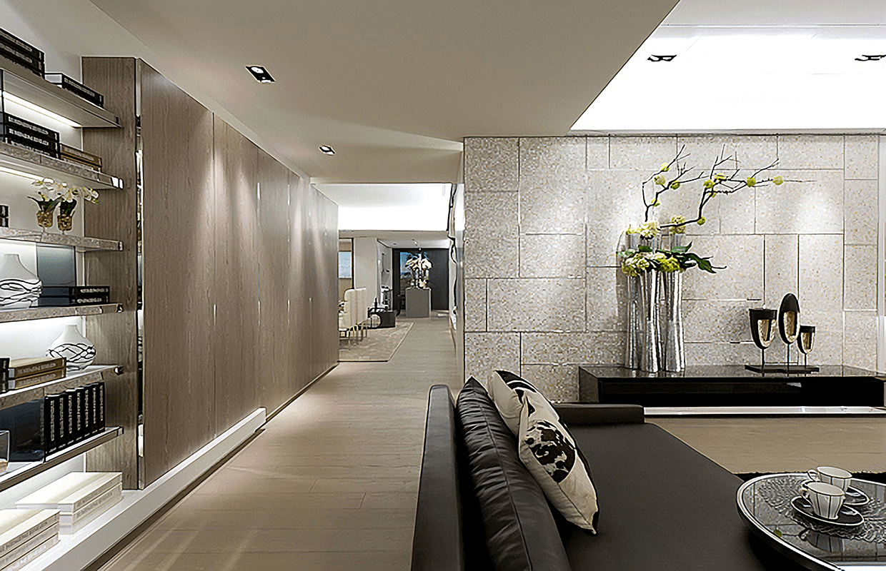 此個案以精緻華麗的現代簡潔風格呈現,並充分表現了此戶型20米深度的優勢,許多機能以不同以往的手法操作,突破了許多樣品屋既定的基本概念,家俱規畫及動現的靈活變化使此戶型產生令人晶亮的視野效果